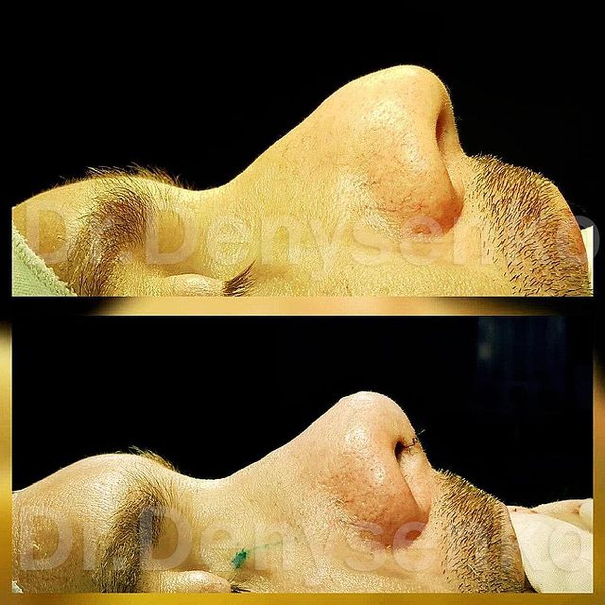 Усовершенствовали форму носа: убрали горбинку, укоротили кончик носа и подняли его. Так как выровняли перегородку, то смогли добиться полноценного ровного дыхания.